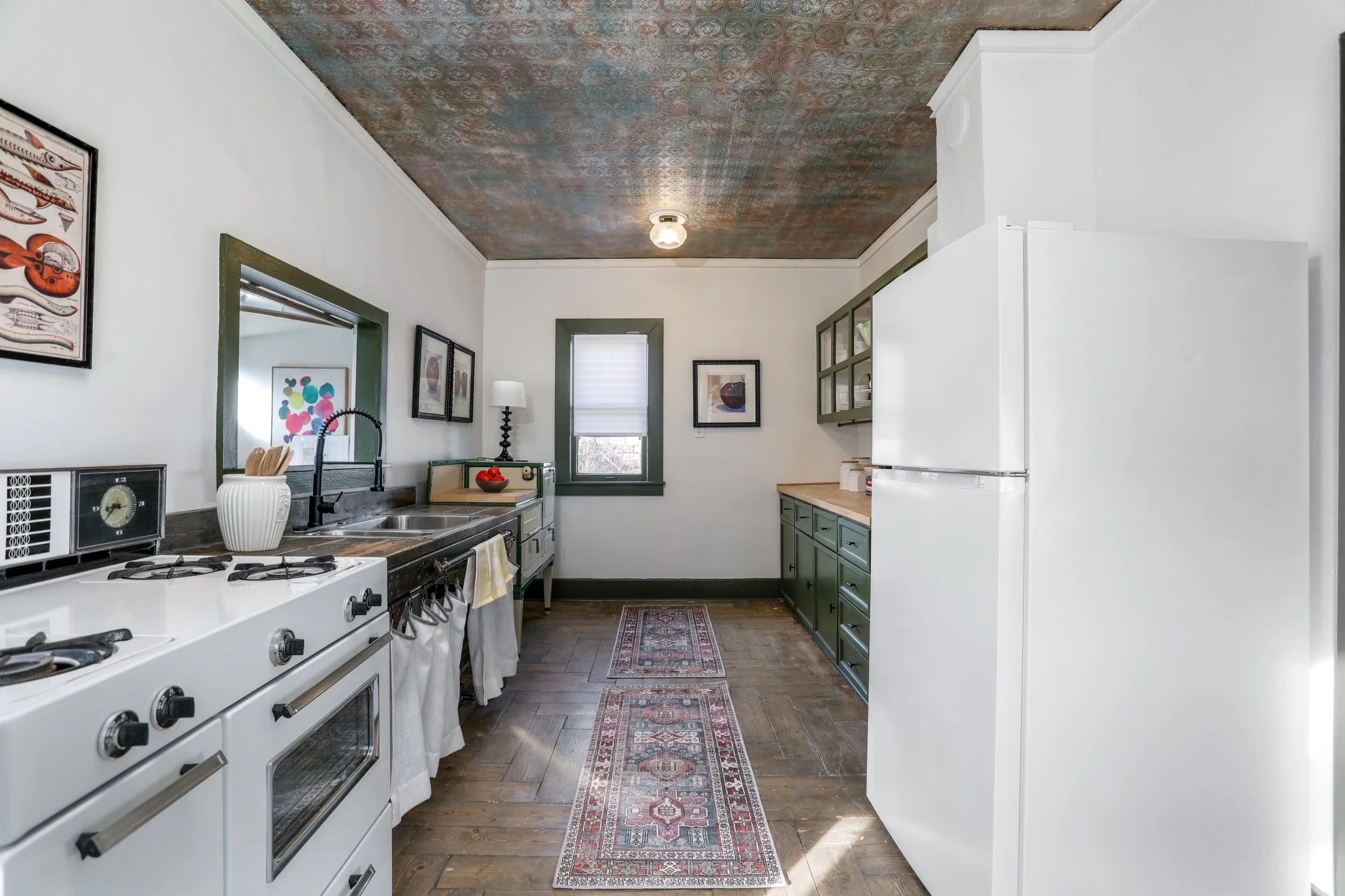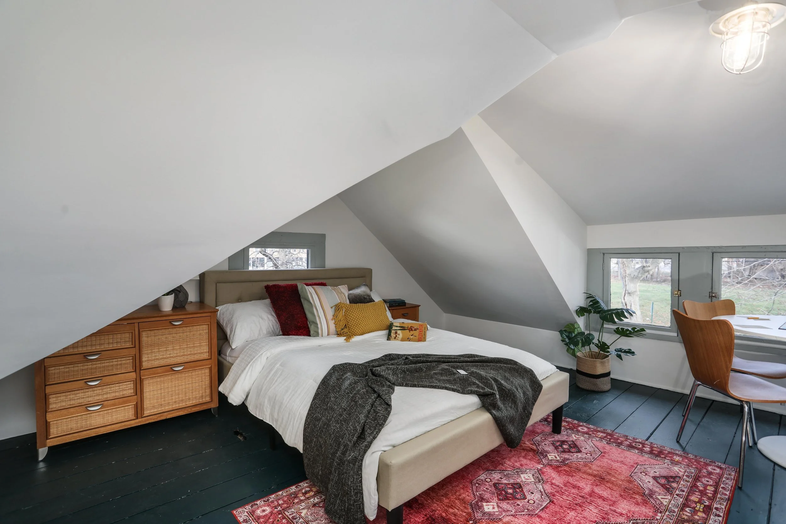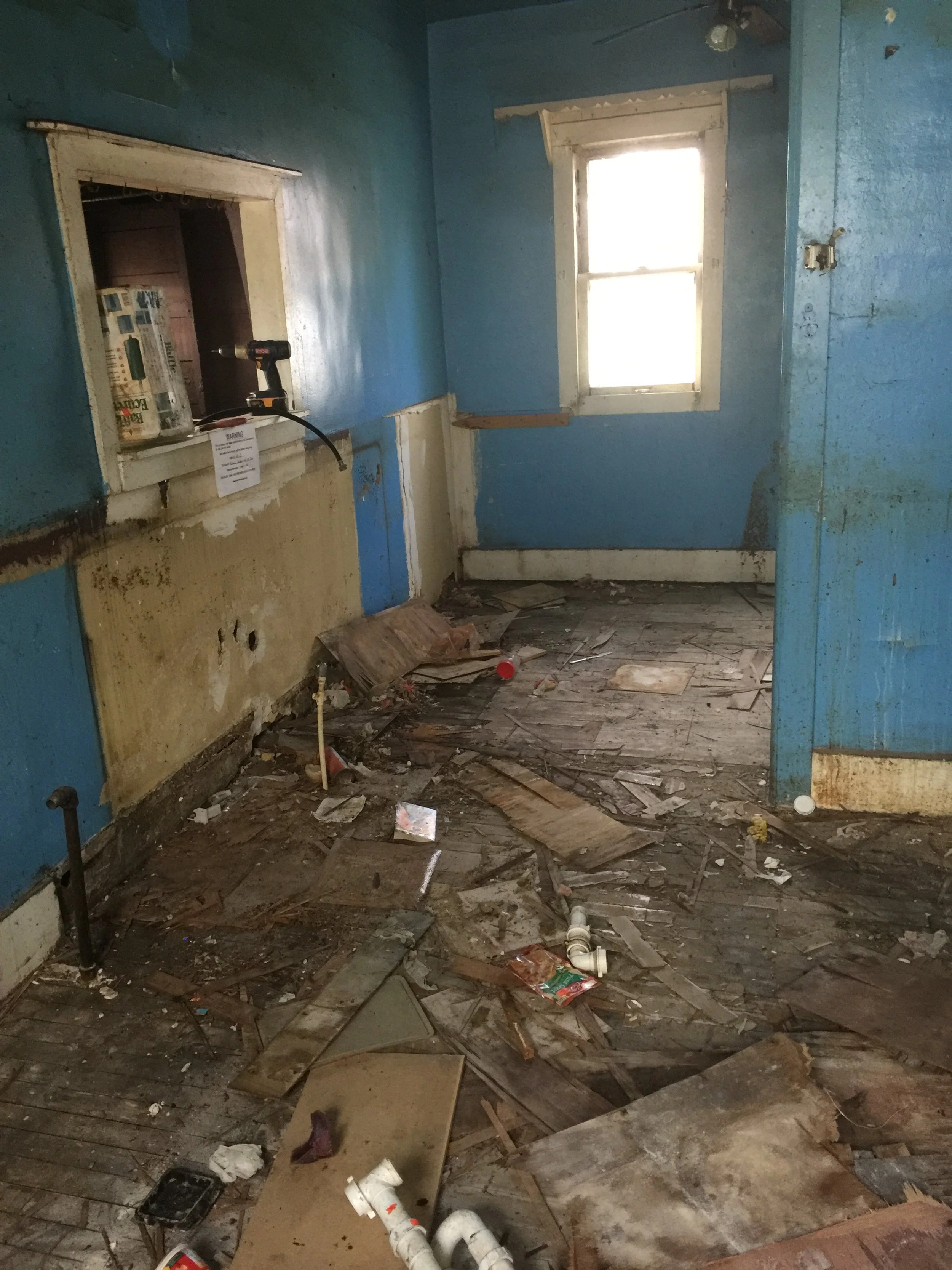 The process of bringing this piece of history back to life included but was definitely not limited to: saving the structural integrity of the home, restoring the original plaster, rebuilding the porch, reconstructing floors where there were holes directly into the crawlspace, bringing windows back to working condition, renovating the attic, adding plumbing and heat after years of it being abandoned, and removing 160 yards worth worth of debris. After it was safe and functional, details were restored and added such as custom built floors, the original wood paneling in the dining room, a bespoke ceiling in the bathroom, a front door that was salvaged and restored, and many other exquisite details.